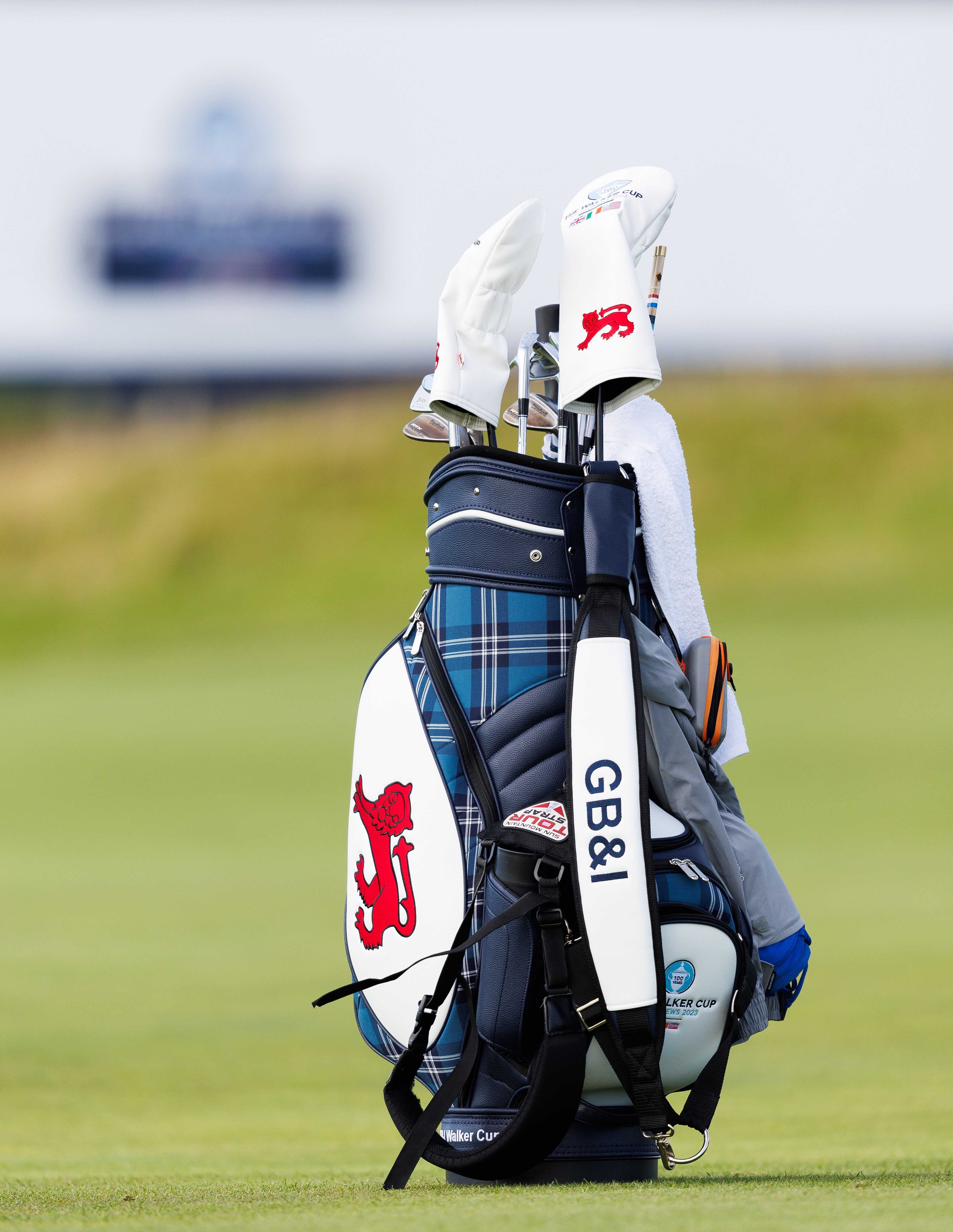 ST ANDREWS, SCOTLAND – AUGUST 28: General view of a Team Great Britain and Ireland golf bag during a practice round prior to the Walker Cup at St Andrews Old Course on August 28, 2023 in St Andrews, Scotland. (Photo by Ross Parker/R&A/R&A via Getty Images)